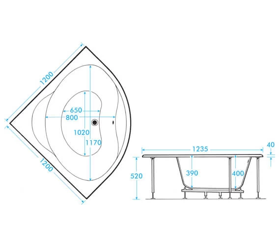 - Space-saving, corner bath design.