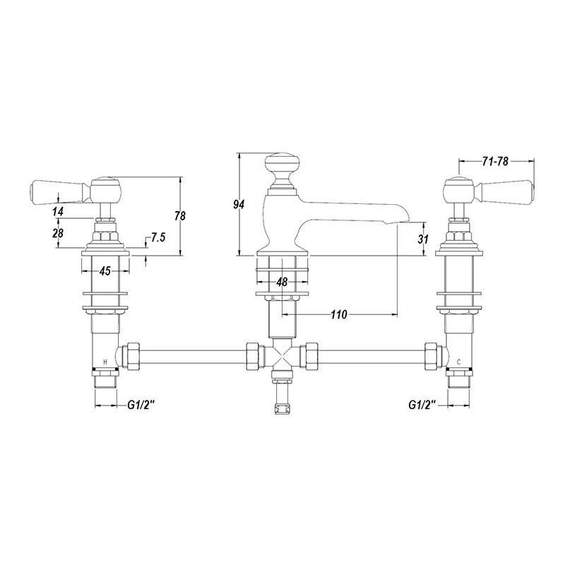 Bayswater Black 3 Tap Hole Deck Basin Mixer with Lever & Hex Collar