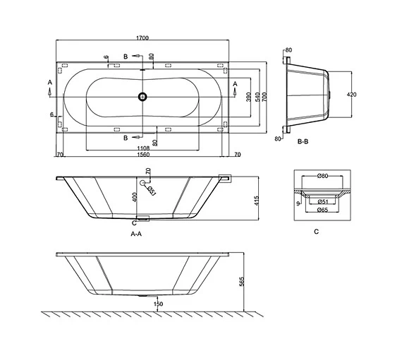 - Also available in other sizes:1700 x 750mm Rectangular Bath – refer code QS-V263061800 x 800mm Rectangular Bath – refer code QS-V26307.