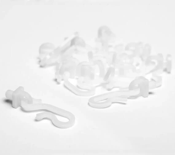 - It is supplied with grey plastic wall brackets, 12 hooks and gliders for one shower curtain.