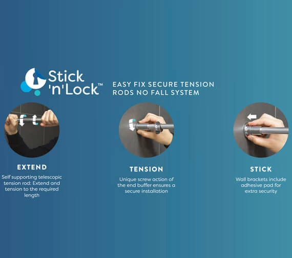 Croydex Stick N Lock Plus 8Ft 6 Inch Telescopic Shower Curtain Rod.