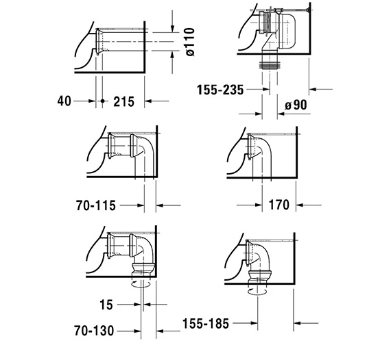 - Toilet seats shown in the image are not included and are sold separately.