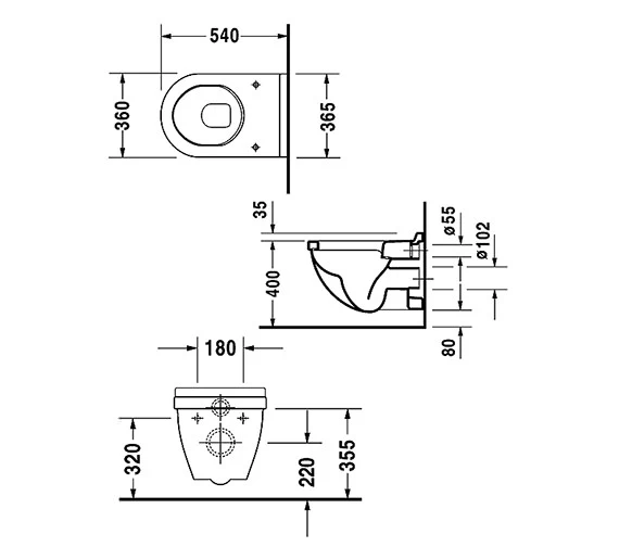 This Starck 3 Wall Mounted Toilet is manufactured by Duravit in a design that assures user comfort. This intelligent toilet is an excellent space-saver as it is compact and can be wall-mounted, not occupying much space, making this toilet ideal for . Premium quality ceramic construction ensures that the heavyweight ceramic ware endures the test of time.