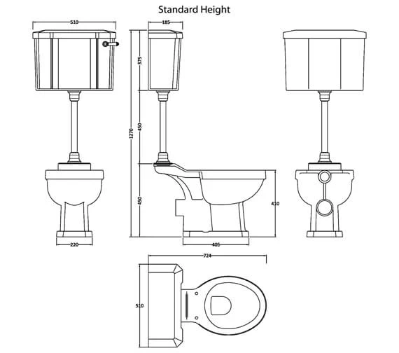 - Overall Height with cistern: 1270mm.