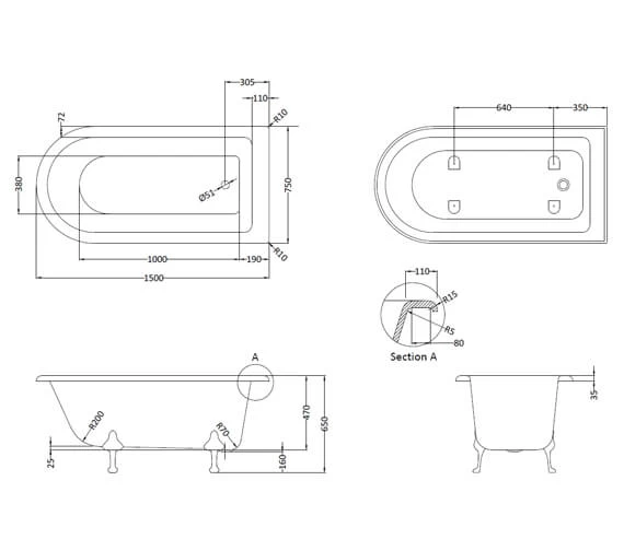 Hudson Reed Winterburn Freestanding Acrylic Bath with Leg Set comes in 2 sizes of 1500mm and 1700mm. It can include a pair of ornate legs as an option. The tub has been given a pristine white finish and comes undrilled for taps. Standard leg set included along with this acrylic built bath offers relaxing soaks in your favourite corner of the bathroom area. This charming bath will soon become the most inviting part of the bathroom and melt away the stresses.