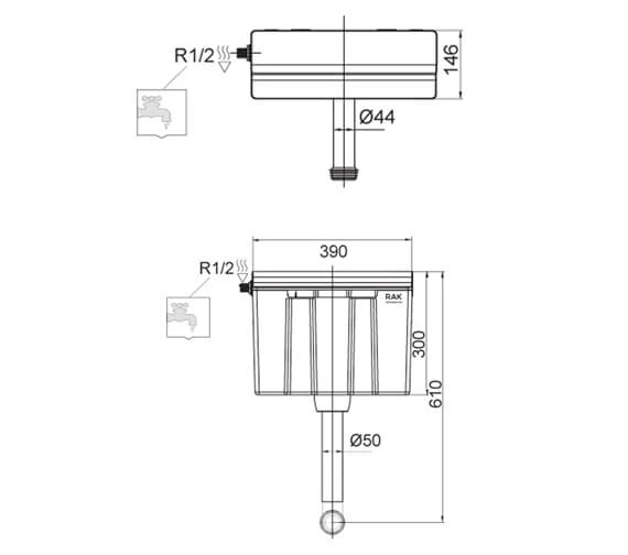 The RAK Concealed Cistern for Furniture Complete with Cable Operated Push Button is available for purchase in both bottom inlet and side inlet models. It comes in a versatile alpine white finish that fits in perfectly to any modern or traditional bathroom layout, anywhere. Crafted from high-quality plastic material and remarkably easy to install, this product offers a dual-flush design that allows the user to choose 6 and 3-litre flushes or 4.5 and 3-litre flushes with each push of the button. A sturdy, wall-mounted unit made to last through years of usage, and this product is ideal for inclusion with any new bathroom construction.