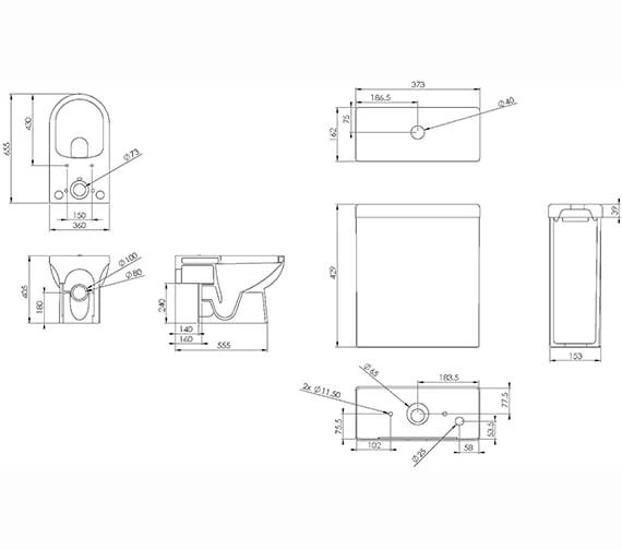 - Size of cistern: 373mm x 429mm [Width x Height].